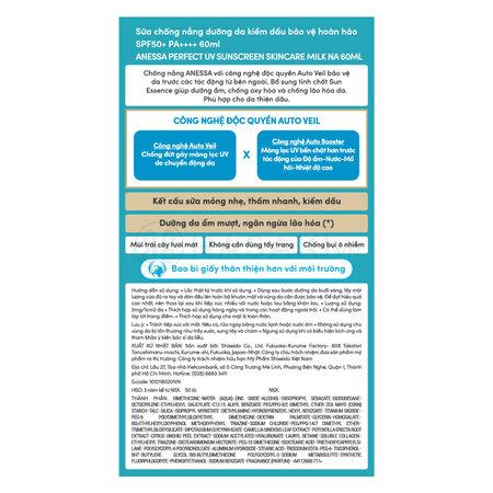 Sữa Chống Nắng Anessa Perfect UV Sunscreen Skincare Milk N SPF50+ PA++++ Dưỡng Da Kiềm Dầu (Mới) là dòng sản phẩm chống nắng da mặt đến từ thương hiệu Anessa – Nhật Bản. Sản phẩm với công nghệ Auto Veil mới giúp cho lớp màng chống UV trở nên bền vững hơn khi gặp nhiệt độ cao, nước và ma sát.